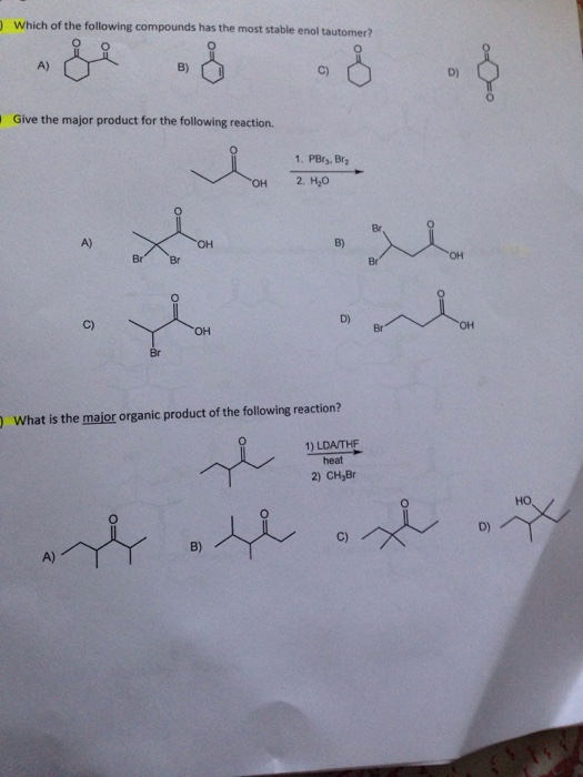 Question 2 which of the following compounds has the most stable enol tautomer? Which of the following compounds has the most stable enol tautomer? Which of the following compounds has the most stable enol tautomer? Previous question next question. Draw the most stable enol tautomer for the following compounds b. Which of the following compounds has the most stable enol tautomer? (a) c h 3 c h d (c) c h 3 c c h 2 c c h 3 o o (b) c h 3 c c h 3 (b) c h 3 (d) c h 3 c − c c h 3 ll o Both the keto tautomer and the enol tautomer. For simple carbonyl compounds under normal conditions, the equilibrium usually strongly favors the keto tautomer (acetone, for example, is >99. 999% keto tautomer).