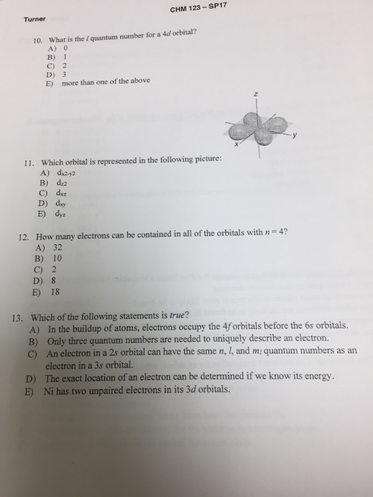 Solved: What Is The L Quantum Number For A 4d Orbital. A) | Chegg.com