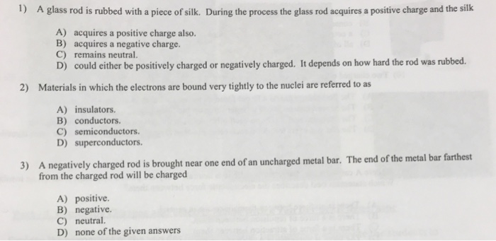 Solved: 1) A Glass Rod Is Rubbed With A Piece Of Silk. Dur... | Chegg.com